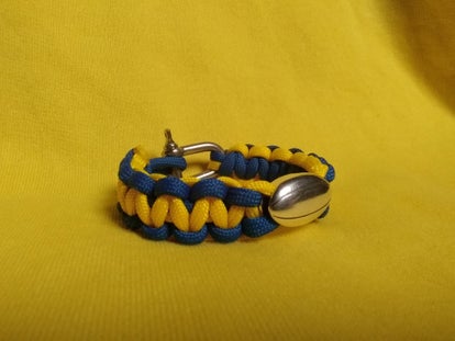 Le bracelet est en Paracorde, le fermoir manille en acier inoxydable, le ballon de Rugby est plaqué en Argent.